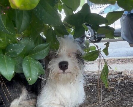The moment the puppies were freed, the two smallest puppies ran across a busy busy street and hid in the bushes. The third puppy stayed behind, sitting quietly by the milk crate and possibly hoping his owner would soon return.