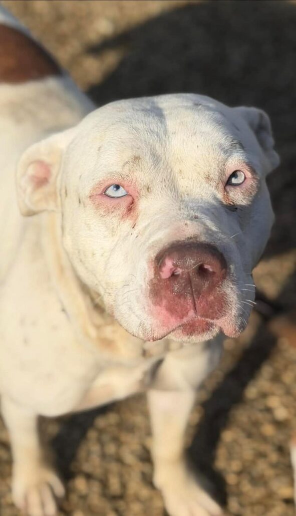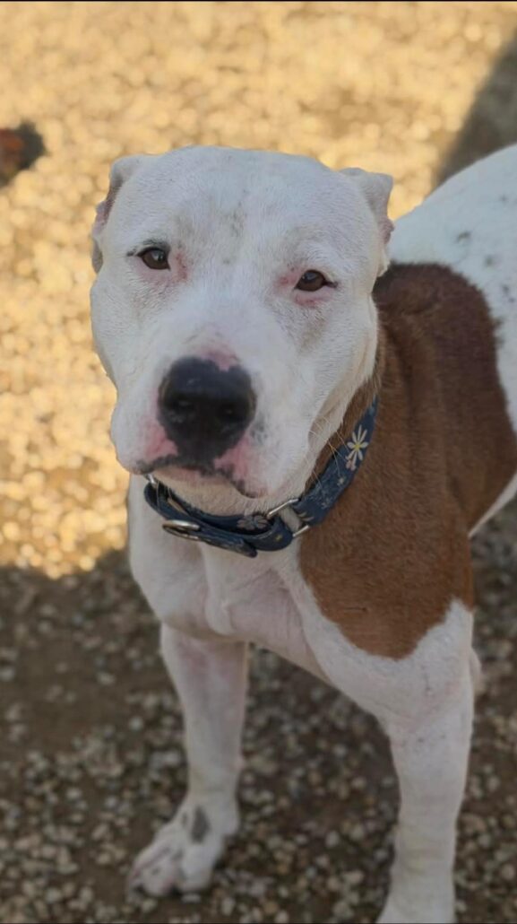 These two girls can be walked together by the shelter volunteers with zero chaos; no pulling, no craziness, just two gentle souls happily heading to the play yard. Both are grateful for the attention and the gentle pats and scratches.