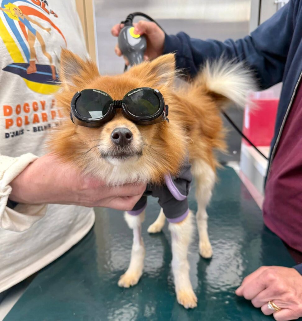 This tiny fighter has been receiving physical therapy and laser treatments. His prognosis looks promising.