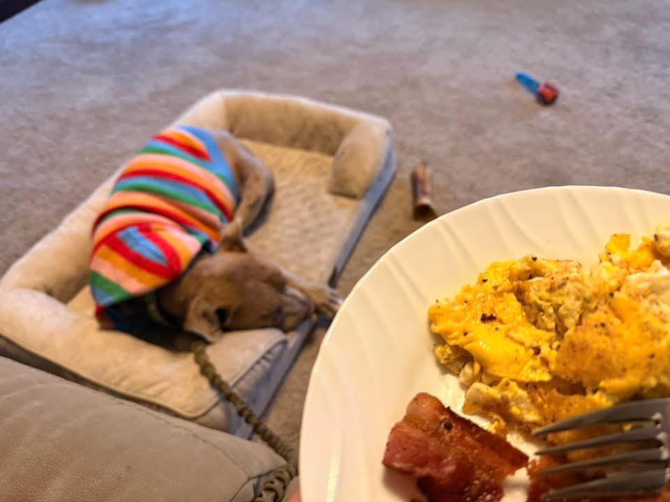 - Rarely barks — only a couple barks when he’s hungry. He is quiet in the crate and overnight.