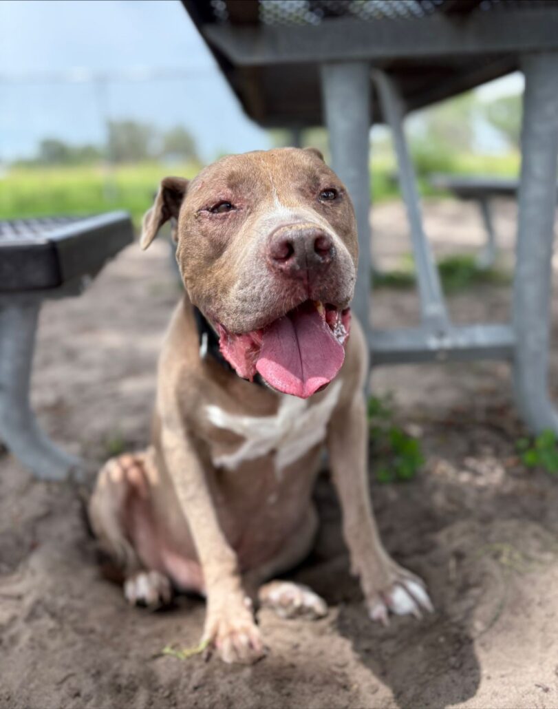 Chester still has a playful spirit when he is rested, so he would enjoy walks. Mostly he soaks up love when it’s offered. He adores being told he’s a good boy, and melts for ear scratches and butt rubs. His tail wags say it all.