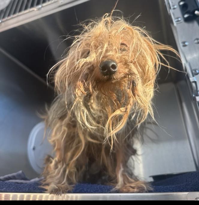 Her coat was matted and her skin pulled tight from the abject neglect.